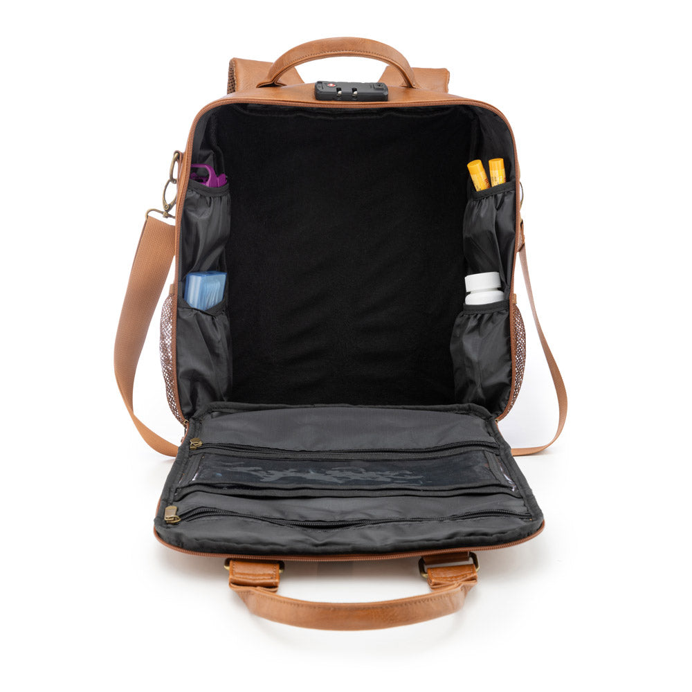 Designed with TSA-compliant features, including a lockable firearm compartment and discreet organization for smooth, secure travel. Whether you're flying or road-tripping, this bag keeps your essentials protected—and your confidence uncompromised.